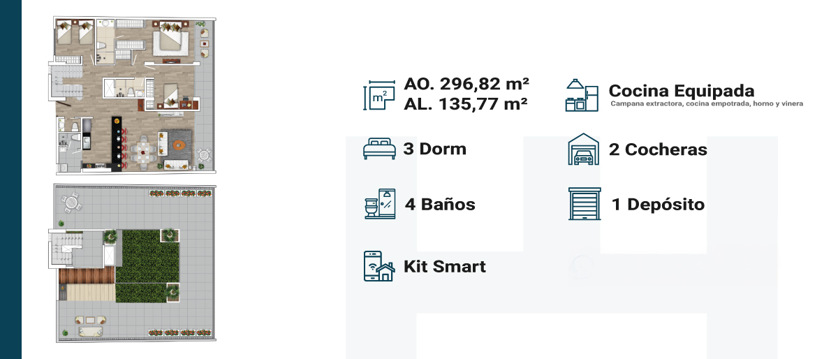 Cuenta con 8 niveles y 18 departamentos Flat y Duplex, de 1 hasta 3 dormitorios con exclusivas y elegantes áreas comunes.